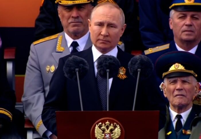 Ο Πούτιν ξεκίνησε την ομιλία του απευθυνόμενος στις ρωσικές Ένοπλες Δυνάμεις: «Όπως και πριν από 77 χρόνια, έτσι και τώρα, αγωνίζεστε για την πατρίδα μας. Για τους ανθρώπους μας στο Ντονμπάς, για την ασφάλεια της χώρας μας. Η ημέρα της νίκης είναι στην καρδιά όλων μας. Δεν υπάρχει ούτε μια οικογένεια στη Ρωσία που δεν υπέφερε κατά τον μεγάλο πατριωτικό πόλεμο. Είμαστε περήφανοι για τη γενιά των νικητών».