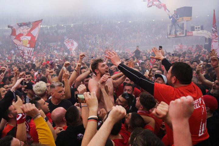 Οι Ερυθρόλευκοι, το βράδυ της περασμένης Τετάρτης έζησαν το όνειρο της 7ης πρόκρισής τους σε Final Four σε μία αξέχαστη αναμέτρηση κόντρα στη Μονακό και πλέον αδημονούν για το Final 4 στο Βελιγράδι στις 19-21 Μαϊου.
