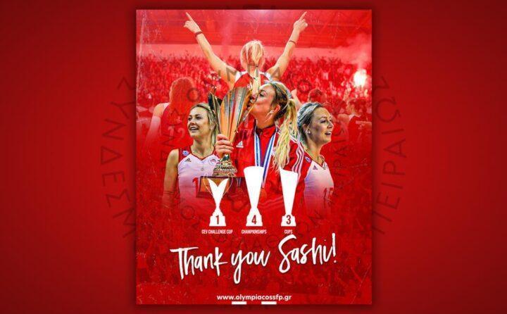 «Όλα τα ωραία κάποτε τελειώνουν. Ό,τι ζήσαμε όμως μαζί αυτά τα 6 χρόνια, δεν θα σβήσει ποτέ. Με όλες τις τιμές που αρμόζουν στην καριέρα και το ήθος της, ο Ολυμπιακός αποχαιρετά την Γερμανίδα από… τον Πειραιά, Σάσκια Χίπε!