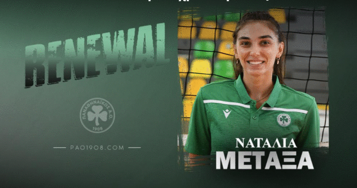 «Ο Παναθηναϊκός Αθλητικός Όμιλος ανακοινώνει την ανανέωση της συνεργασίας του με την κεντρική Ναταλία Μεταξά για το γυναικείο τμήμα βόλεϊ, για την αγωνιστική σεζόν 2022-2023.