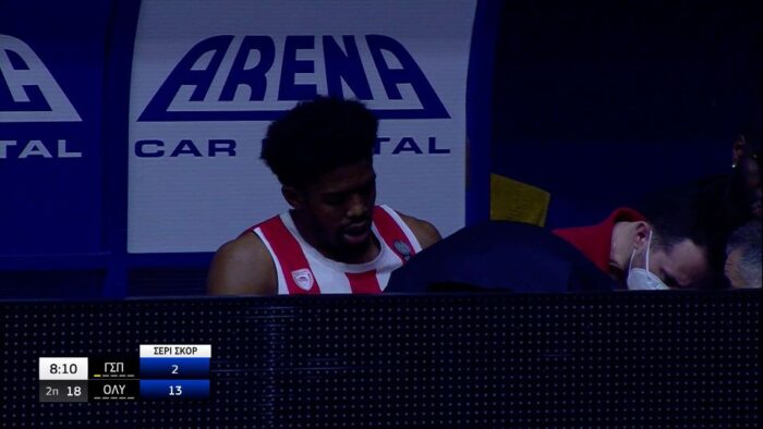 Ανησυχία επικράτησε κατά τη διάρκεια της δεύτερης περιόδου στο Περιστέρι όταν ο Σακίλ ΜακΚίσικ λόγω ενοχλήσεων επέστρεψε στον πάγκο του Ολυμπιακού με ενοχλήσεις προκειμένου να τον δει ο γιατρός των Ερυθρολεύκων.