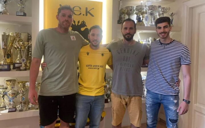 «Η ΑΕΚ βρίσκεται στην ευχάριστη θέση να ανακοινώσει την έναρξη της συνεργασίας της με τους Νίκο Παλέντζα, Λυκούργο Ρούσση και Σπύρο Μπαρμπούνη, ενώ ανακοινώνει και την ανανέωση της συνεργασίας της με τον Γιάννη Αχιλλεόπουλο. Τους αθλητές στα γραφεία μας, υποδέχτηκαν ο Πρόεδρος της ΑΕΚ, Αλέξης Αλεξίου, ο Β’ Αντιπρόεδρος και Διοικητικός Υπεύθυνος των Τμημάτων Βόλεϊ, Λευτέρης Αρχόντης, αλλά και ο προπονητής, Άκης Χατζηαντωνίου, οι οποίοι και τους ευχήθηκαν καλή σεζόν.