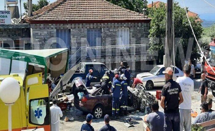 Η σύγκρουση ήταν τόσο σφοδρή που σκοτώθηκε ο οδηγός του πρώτου αυτοκινήτου, ένας επιβάτης του αλλά και ένας πεζός, σύμφωνα με πληροφορίες του proininews.gr.