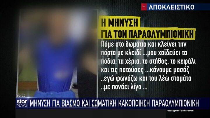 «Πάμε στο δωμάτιο και κλείνει την πόρτα με κλειδί. Μου χαϊδεύει τα πόδια, τα χέρια, το στήθος, το κεφάλι και τις πατούσες. Κάνουμε μασάζ. Εγώ φωνάζω και του λέω “σταμάτα”. Με πονάει λίγο…», δηλώνει ο παραολυμπιονίκης.