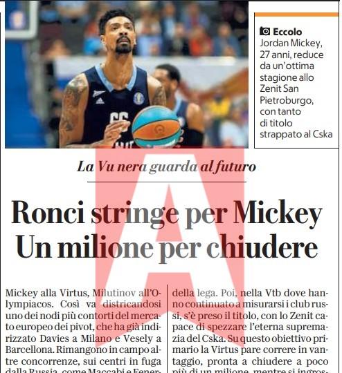 Χωρίς περαιτέρω επεξηγήσεις, η σύντομη αναφορά της La Reppublica θεωρεί δεδομένη την επιστροφή Μιλουτίνοφ στον Ολυμπιακό και την απόκτηση του Τζόρνταν Μίκι από τη Βίρτους Μπολόνια, ανάβοντας φωτιές στον κόσμο των Ερυθρόλευκων που ονειρεύεται την ισχυρότερη φροντ λάιν της Ευρώπης με Μιλουτίνοφ και Φαλ από την επόμενη σεζόν!