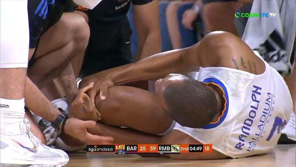 Κόβει την ανάσα ο τραυματισμός του πολύ άτυχου Άντονι Ράντολφ. Ο παίκτης της Ρεάλ Μαδρίτης σε μια προσπάθεια να κλέψει από τον Μίροτιτς έπεσε στο παρκέ και χτύπησε άσχημα πιάνοντας το αριστερό του γόνατο.