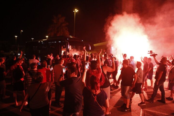Λίγο μετά τα μεσάνυχτα της Τετάρτης εκατοντάδες οπαδοί του Ολυμπιακού και οι πρόεδροι της ομάδας, Παναγιώτης και Γιώργος Αγγελόπουλος βρέθηκαν στο ΣΕΦ προκειμένου να αποθεώσουν την αποστολή των Πειραιωτών σε μία ονειρική σεζόν που πάει να κλείσει με ένα ιστορικό νταμπλ και φυσικά την παρουσία στο Final-4 της Euroleague.
