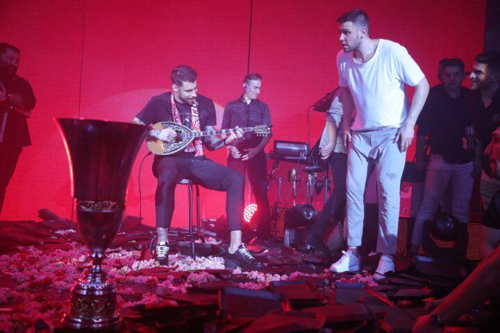 Στο χθεσινό γλέντι του Ολυμπιακού σε νυχτερινό κέντρο διασκέδασης ο «κάπτεν» Πρίντεζης είχε (κι εκεί) την τιμητική του και μάλιστα ανέδειξε μερικά καλά κρυμμένα ταλέντα του εκτός παρκέ, όπως η ικανότητά του στο μπουζούκι.