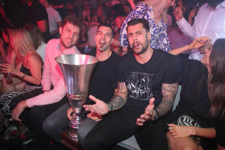 Οι Ερυθρόλευκοι το γιόρτασαν μέχρι πρωίας σε νυχτερινό κέντρο διασκέδασης παρέα με την κούπα και σε πρωινό μήνυμά της στα social media η ΚΑΕ Ολυμπιακός «απαθανάτισε» τα καλύτερα κλικς της χθεσινής βραδιάς μετά την επική και συγκινητική -ελέω Πρίντεζη- φιέστα στο ΣΕΦ.