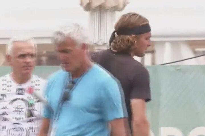 Kι αυτό γιατί ο Έλληνας πρωταθλητής είχε μία διαφωνία με τον πατέρα – προπονητή του Απόστολο Τσιτσιπά και λόγω αυτής αποχώρησε νευριασμένος από το κορτ λέγοντας: «όλο αυτό είναι λάθος».