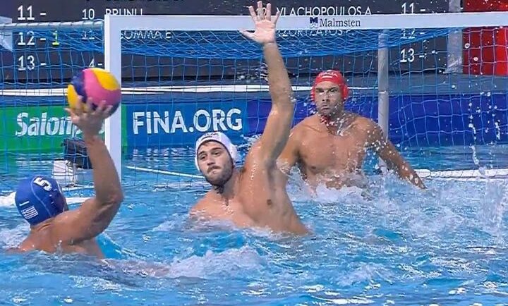 Προηγήθηκαν και με 9-6, αλλά η Εθνική μείωσε σε 9-8 και 10-9, αλλά το γκολ του Ντι Φούλβιο για το 11-9 και μια ακόμα άμυνα που έβγαλαν οι Ιταλοί ήταν καθοριστικά σημεία. Ο Βλαχόπουλος με πέναλτι μείωσε σε 11-10, 4 δευτερόλπετα πριν από τη λήξη.