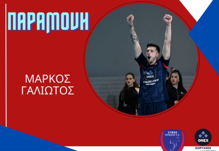 Ο Μάρκος Γαλιώτος παραμένει για ακόμα μια χρονιά στον Φοίνικα Σύρου, καθώς παραμένει σε ισχύ το τριετές συμβόλαιο που υπέγραψε με τον κυκλαδίτικο σύλλογο το περασμένο καλοκαίρι.