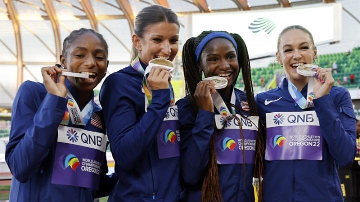 Οι Τζαμαϊκανές δυσκολεύτηκαν στις αλλαγές τους, επιτρέποντας στις ΗΠΑ να κάνουν την πέμπτη καλύτερη επίδοση όλων των εποχών με 41,14” και να την κερδίζουν για τέσσερα εκατοστά του δευτερολέπτου (41,18”).