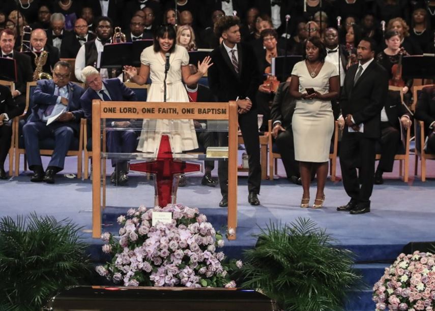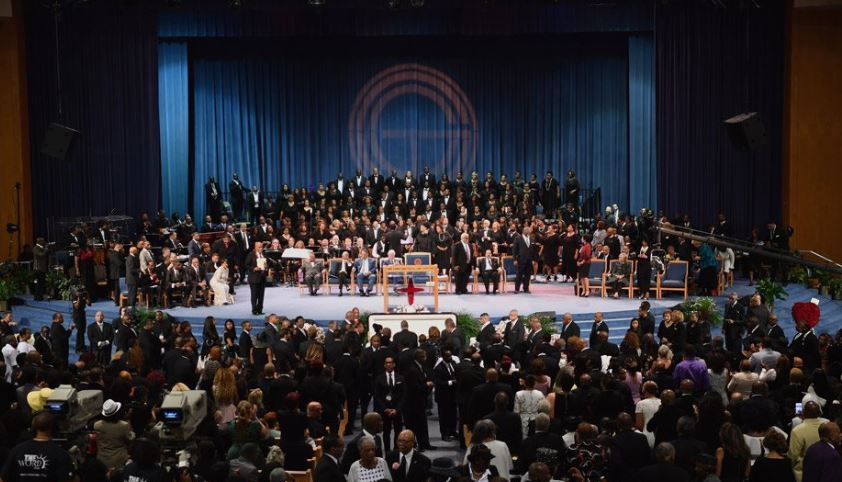 Η εκκλησία δονείτο από τη γκόσπελ μουσική και οι παρευρισκόμενοι φρόντισαν να τιμήσουν την Φράνκλιν με τον τρόπο που της έπρεπε: Τραγουδώντας και χτυπώντας παλαμάκια. «Εμπρός λοιπόν, εδώ τελείται λειτουργία, υψώστε τη φωνή σας», κάλεσε το πλήθος ο επίσκοπος Τσαρλς Έλις Γ’, ενώ η χορωδία και η ορχήστρα έπαιζαν όλο και πιο δυνατά πίσω του.