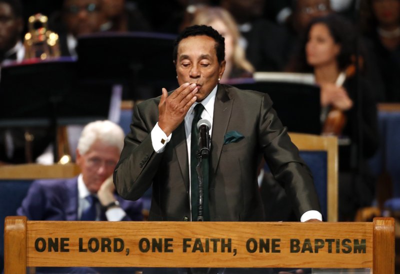 Επικήδειους εκφώνησαν ο Μπιλ Κλίντον και ο Σμόκι Ρόμπινσον. «Είχε τη φωνή μιας γενιάς, ίσως τη φωνή του αιώνα», είπε ο πρώην πρόεδρος, λέγοντας ότι και ο ίδιος ήταν «γκρούπι» της Φράνκλιν πολύ πριν αναλάβει προεδρικά καθήκοντα. Κλείνοντας την ομιλία του, κράτησε το μικρόφωνο κοντά στο κινητό τηλέφωνό του για να ακουστεί από τα μεγάφωνα της εκκλησίας το χιτ «Think» της Φράνκλιν.