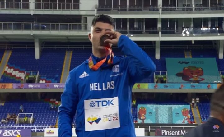 Ο 19χρονος Έλληνας πρωταθλητής χάρη στην εξαιρετική του βολή στα 79,11 μέτρα ανέβηκε στην κορυφή και κατά την ανάκρουση του εθνικού μας ύμνου ήταν ιδιαίτερα συγκινημένος, δείχνοντας πόσα πολλά σημαίνει αυτή η επιτυχία για τον ίδιο.