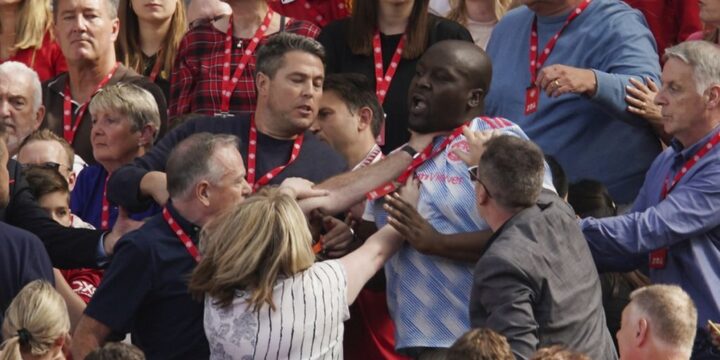 Συγκεκριμένα δύο οπαδοί των «Κόκκινων Διαβόλων» πιάστηκαν στα χέρια και από τον… λαιμό για άγνωστους μέχρι τώρα λόγους σε επεισόδιο που κάνει ήδη τον γύρο του κόσμου μέσω Twitter και σίγουρα δεν θα περάσει απαρατήρητο από τη διοίκηση τόσο της ομάδας όσο και της Premier League που καταδικάζει τη βία και ποτέ δεν αφήνει ατιμώρητα τέτοιου είδους περιστατικά είτε εντός είτε εκτός γηπέδων.