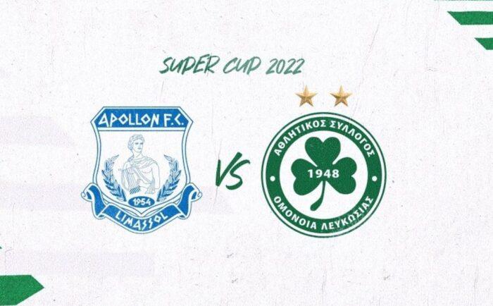 Παρακολουθήστε LIVE την εξέλιξη του κυπριακού Super Cup ανάμεσα στον αντίπαλο του Ολυμπιακού, Απόλλωνα Λεμεσού και την Ομόνοια.
