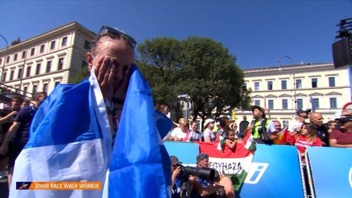 Η Ελληνίδα πρωταθλήτρια έκοψε πρώτη το νήμα με μία απίστευτη κούρσα, μία από τις πιο ιστορικές στην ιστορία του αθλήματος για τα ελληνικά χρώματα, και ξέσπασε σε δάκρυα αγκαλιά με την ελληνική σημαία αλλά και τον σύζυγό της, που για άλλη μια φορά βρέθηκε στο πλευρό της.