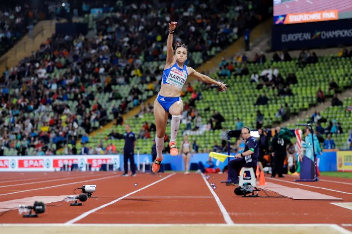Η αθλήτρια από την Ουκρανία στο πέμπτο της άλμα σημείωσε 15,02 μ. και σημείωσε την κορυφαία επίδοση φέτος στην Ευρώπη. Η Κριστίνα Μάκελα (Φινλανδία) στα 30 της χρόνια και μετά από πολλές παρουσίες σε τελικούς κατέκτησε το πρώτο της μετάλλιο με 14, 64 μέτρα. Στο βάθρο της διοργάνωσης επέστρεψε η Χάνα Μινένκο (Ισραήλ) με 14,45 μέτρα.
