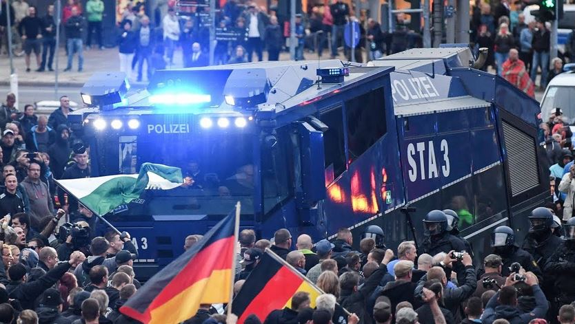 Σχεδόν 4.500 πολίτες ανταποκρίθηκαν στην πρόσκληση διαφόρων ακροδεξιών κινημάτων, κυρίως της Εναλλακτικής για τη Γερμανία (AfD) και του αντιισλαμικού Pegida που τάσσεται κατά της μεταναστευτικής πολιτικής της καγκελαρίου Μέρκελ.