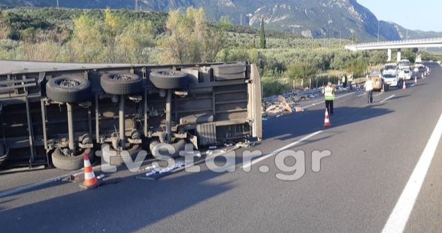 Από τις 7.15 π.μ. έχει εκτραπεί νταλίκα που μετέφερε απορρυπαντικά στο 198ο χλμ στο ρεύμα προς Αθήνα • Κλειστή η μία λωρίδα, όπως και η ΛΕΑ