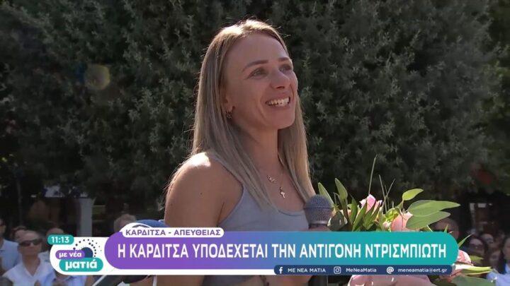 Αποθεωτικής υποδοχής έτυχε η Αντιγόνη Ντρισμπιώτη στην επιστροφή στον τόπο καταγωγής της, την Καρδίτσα.