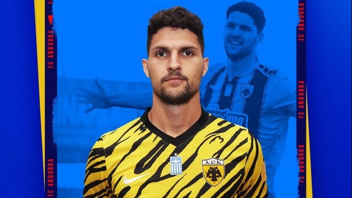 Η ομάδα της δεύτερης κατηγορίας της Ισπανίας ανακοίνωσε την απόκτησή του υπό μορφή δανεισμού από την ΑΕΚ. Ο 28χρονος Έλληνας εξτρέμ υπέγραψε μονοετές συμβόλαιο με την Ανδόρα, το οποίο εκπνέει στις 30 Ιουνίου 2023 και δεν περιλαμβάνεται οψιόν αγοράς.