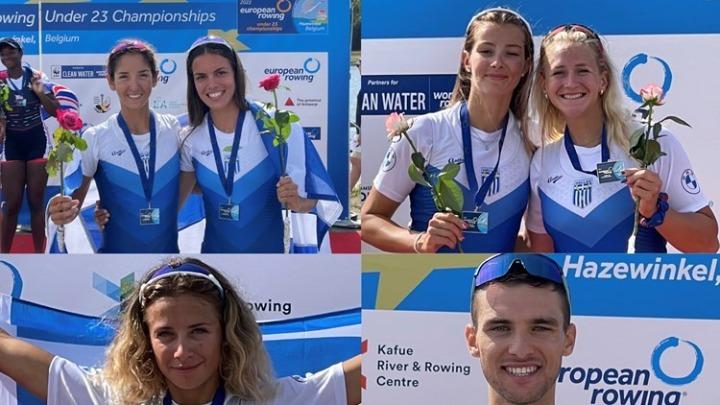 Στην 3η θέση του πίνακα μεταλλίων του Ευρωπαϊκού πρωταθλήματος Κ23 στο Χαζεβίνγκελ του Βελγίου κατετάγη η Ελλάδα, κατακτώντας τρία χρυσά μετάλλια και ένα ασημένιο. υνολικά η ελληνική ομάδα πήρε μέρος σε 8 μεγάλους τελικούς κι έναν «μικρό» πήρε δύο 4ες θέσεις, μια 5η και μια 6η καθώς και μια 11η. Δυο πληρώματα γυναικών και ένα ανδρών κατέκτησαν τα τρία χρυσά.