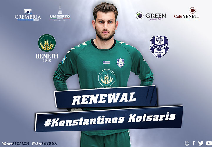 «Η ΠΑΕ Απόλλων Σμύρνης ανακοινώνει την υπογραφή νέου συμβολαίου με τον τερματοφύλακα Κωνσταντίνο Κότσαρη. Γεννημένος στις 25 Ιουλίου 1996, αγωνίστηκε στην ομάδα μας από το καλοκαίρι του 2020 έως το τέλος του περασμένου πρωταθλήματος οπότε και έληξε το συμβόλαιό του. Θα συνεχίσει να αγωνίζεται στον Απόλλωνα ενώ στο παρελθόν έχει παίξει σε Παναθηναϊκό, Ομόνοια και Αήττητο Σπατών. Υπήρξε διεθνής με την Εθνική ομάδα των Ελπίδων και τις μικρότερες ηλικιακά Εθνικές ομάδες».