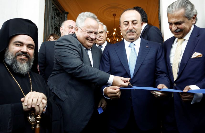 #Izmir: FM @NikosKotzias inaugurated the renovated historic building of the Consulate General of #Greece. #Turkey FM @MevlutCavusoglu attended event / Ο ΥΠΕΞ Ν. Κοτζιάς εγκαινίασε το ανακαινισμένο ιστορικό κτήριο του Γενικού Προξενείου Ελλάδας στη Σμύρνη. ΥΠΕΞ Τουρκίας παρευρέθη pic.twitter.com/eNKUorUQXt