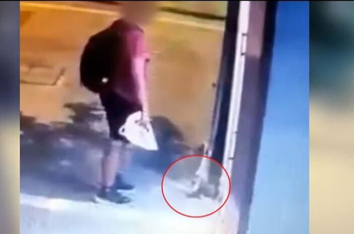 Η πράξη του που έγινε στα τέλη Αυγούστου, καταγράφηκε σε κλειστό κύκλωμα διπλανού καταστήματος και το βίντεο ήρθε στην κατοχή της φιλοζωικής οργάνωσης που προχώρησε στη συνέχεια στην καταγγελία του γεγονότος στην αστυνομία .