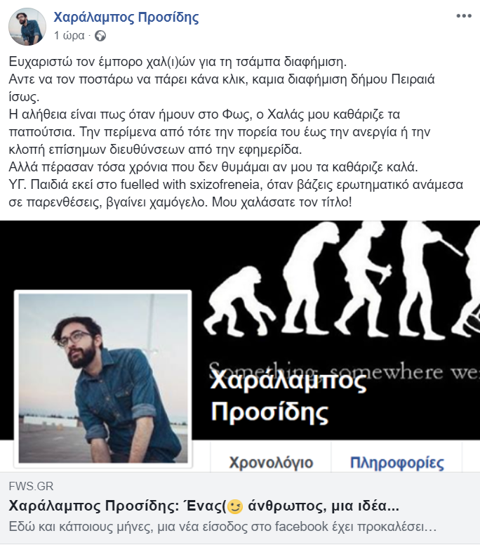 Για τον «Χαράλαμπο Προσίδη» έγραψε προχθές στο FWS.GR ο Επιθεωρητής Κάμπελ…