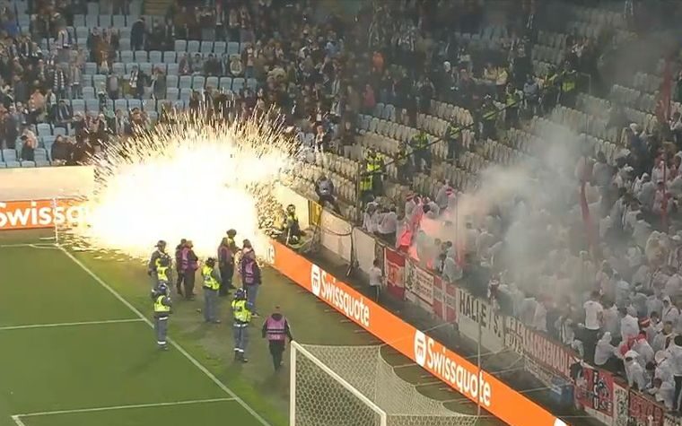 Οι Γερμανοί οπαδοί της Ουνιόν πέταξαν πολλές κροτίδες εντός αγωνιστικού χώρου με αποτέλεσμα να χρειαστεί η επέμβαση των αστυνομικών δυνάμεων. Με απόφαση του διαιτητή οι δύο ομάδες οδηγήθηκαν στα αποδυτήρια ενώ η αναμέτρηση συνεχίστηκε κανονικά μετά από σχεδόν μισή ώρα.