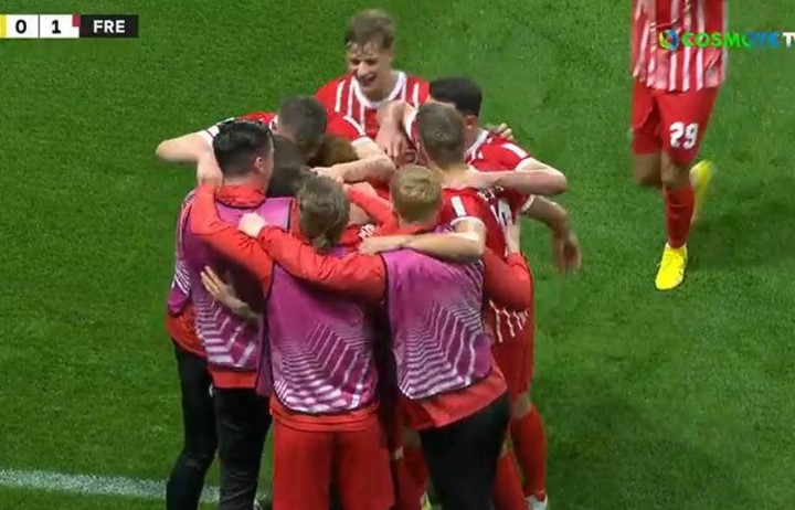 Η Φράιμπουργκ πήρε το προβάδισμα στην έδρα της Ναντ στο 26ο λεπτό της αναμέτρησης. Ο Λαφόν έκανε λάθος διώξιμο, το οποίο εκμεταλλεύτηκε ο Κίμπλερ. Ο παίκτης της γερμανικής ομάδας με ένα δυνατό σουτ έστειλε την μπάλα στα δίχτυα και έκανε το 0-1.