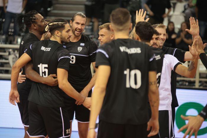 Οι ασπρόμαυροι με επιθετικές αιχμές τους Βαν Ντεν Ντρις, Ράπτη κέρδισαν εύκολα τα δύο πρώτα σετ (25-16, 25-15) και μετά το 0-2 ο Μιλένκοσκι άρχισε τις αλλαγές με τον Δικέφαλο να χάνει στις λεπτομέρειες το τρίτο σετ, αλλά στο τέταρτο να μην αντιμετωπίζει κανένα πρόβλημα.