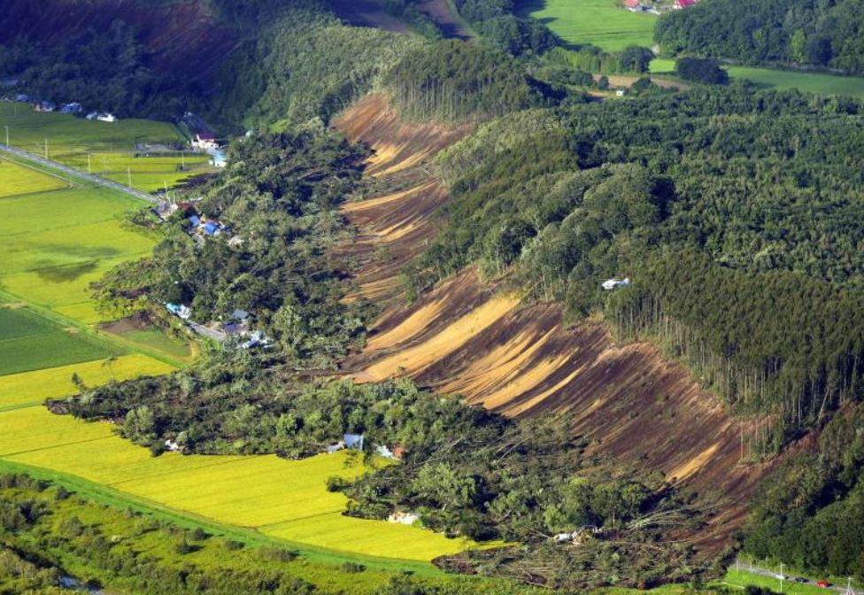 Ενώ ακόμα η Ιαπωνία μετρά τις πληγές της από τον τυφώνα Τζέμπι, μία ακόμα καταστροφή ήρθε να πλήξει τη χώρα. Πλάνα που τραβήχτηκαν από αέρος αποκάλυψαν ότι ο σεισμός προκάλεσε δεκάδες κατολισθήσεις κοντά στην πόλη Ατσούμα, στο νότιο Χοκάιντο, ορισμένες από τις οποίες καταπλάκωσαν σπίτια.