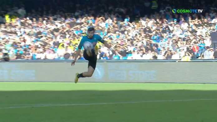 Ο απίθανος Κβαρατσχέλια πέτυχε το τρίτο γκολ που ήταν και το ωραιότερο και ξεσήκωσε τις εξέδρες. Ο Γεωργιανός κατέβασε με τρομερό κοντρόλ την μπάλα και έπιασε ένα φοβερό σουτ για να γράψει το 3-0.