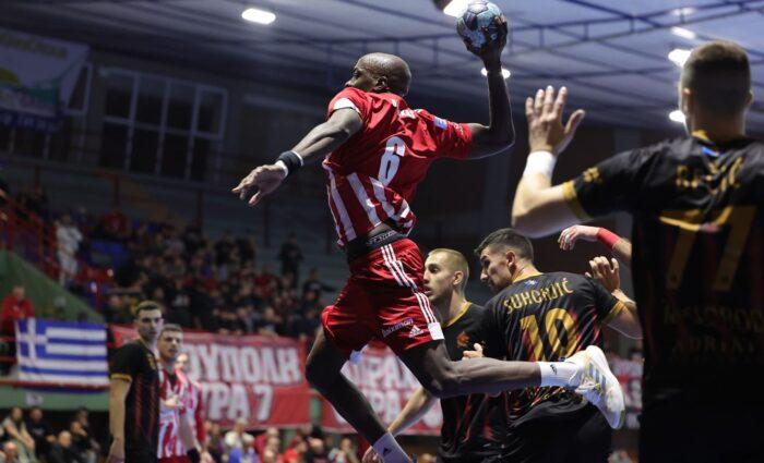 Με ένα μικρό ξέσπασμα και σερί 0-6 οι φιλοξενούμενοι μείωσαν στα δύο γκολ στο ημίχρονο (16-14) αλλά στη συνέχεια οι Ερυθρόλευκοι ανέβασαν την έντασή τους στην επίθεση και σε συνδυασμό με την αξιόπιστη άμυνα έφτασαν σε μια πολύ άνετη νίκη με 34-24.