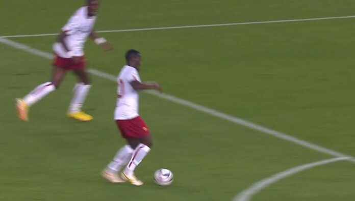 Ο διεθνής μέσος από τη Γουινέα – αγωνίζεται ως δανεικός από τον Ολυμπιακό – έκλεψε ωραία την μπάλα από τον Ταμέζ και έφυγε κάθετα για να ανοίξει αριστερά στον Έιμπραχαμ.