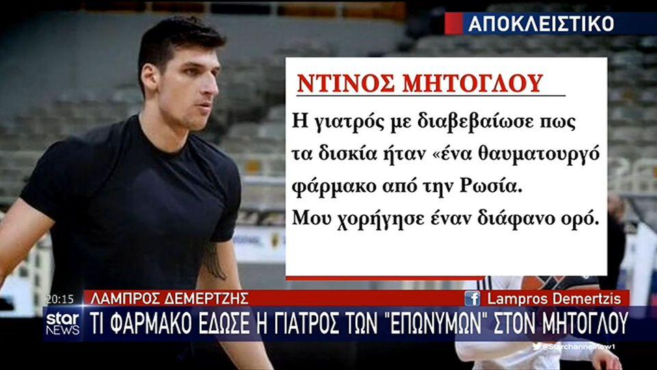 Σύμφωνα με όσα αποκάλυψε σε αποκλειστικό ρεπορτάζ του το STAR στο κεντρικό δελτίο ειδήσεων, στον παίκτη της Αρμάνι Μιλάνο χορηγήθηκε σκεύασμα αμφιβόλου ποιότητας εκτός εγκεκριμένης λίστας του ΕΟΦ.
