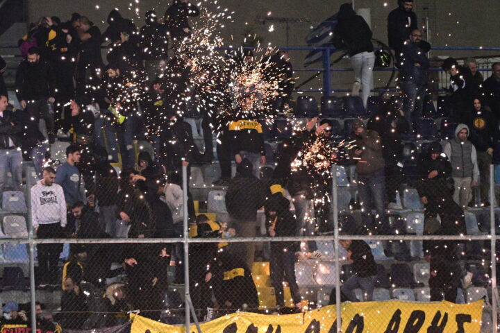Είναι αδιανόητο πως μια χούφτα 10-15 χούλιγκανς με κουκούλες εκτόξευσαν με πιστόλια ευθείας βολής (τα λεγόμενα φονικά στυλό) φωτοβολίδες εναντίον των φιλάθλων μας με τους αστυνομικούς να παρακολουθούν σαν θεατές. Το περιστατικό διήρκεσε περίπου 15 λεπτά με τις δυνάμεις της Αστυνομίας να παρακολουθούν απαθείς!!!