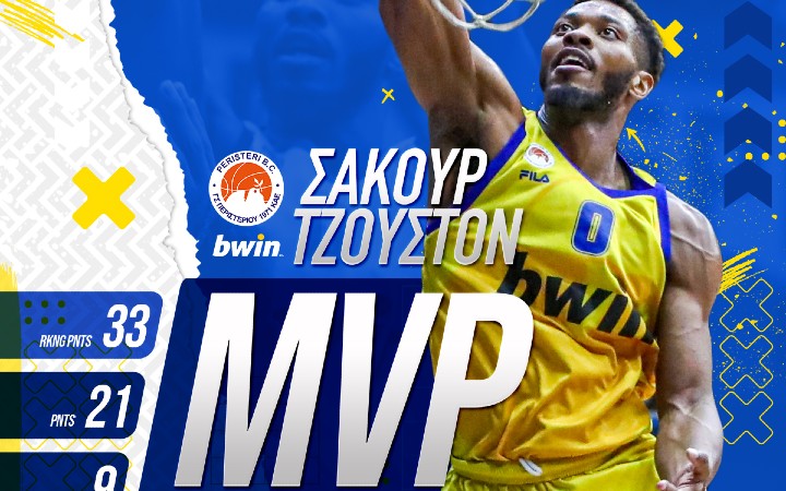 Ο Σακούρ Τζούστον αναδείχθηκε πολυτιμότερος παίκτης της εβδομάδας στην Basket League. Ο Αμερικανός σέντερ του Περιστερίου πραγματοποίησε εξαιρετική εμφάνιση κόντρα στην Καρδίτσα και πήρε το βραβείο του MVP.