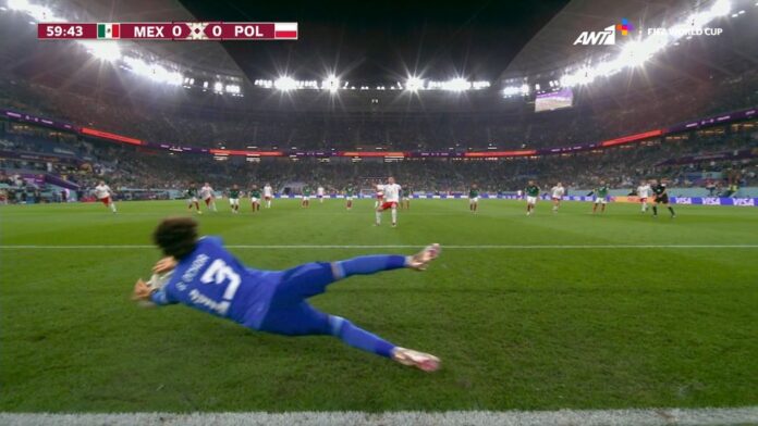 Ο διεθνής Μεξικανός τερματοφύλακας έπεσε εντυπωσιακά στην αριστερή γωνία του κι έδιωξε την μπάλα στην εκτέλεση πέναλτι του Ρόμπερτ Λεβαντόφσκι.