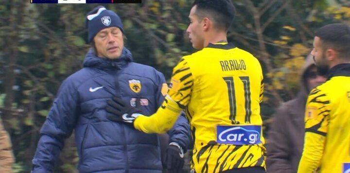 Βέβαια, η κατάσταση συνέχισε να μυρίζει μπαρούτι όταν μέχρι και ο προπονητής της ΑΕΚ, Ματίας Αλμέιδα, ήταν σε έξαλλη κατάσταση και λίγο έλειψε να ορμήσει στον διαιτητή του αγώνα, ο οποίος τον τιμώρησε με κίτρινη κάρτα και αν δεν ήταν οι Αραούχο και Φερνάντες για να τον ηρεμήσουν μάλλον θα τον είχε αποβάλει. Κι όλα αυτά σε φιλικό!