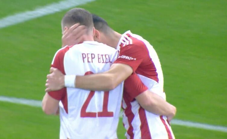 Ο Εμβιλά έδωσε αρχικά την πάσα στον Μπιέλ που κουβάλησε την μπάλα κι έπιασε το σουτ εκτός περιοχής για να γράψει το 1-0.