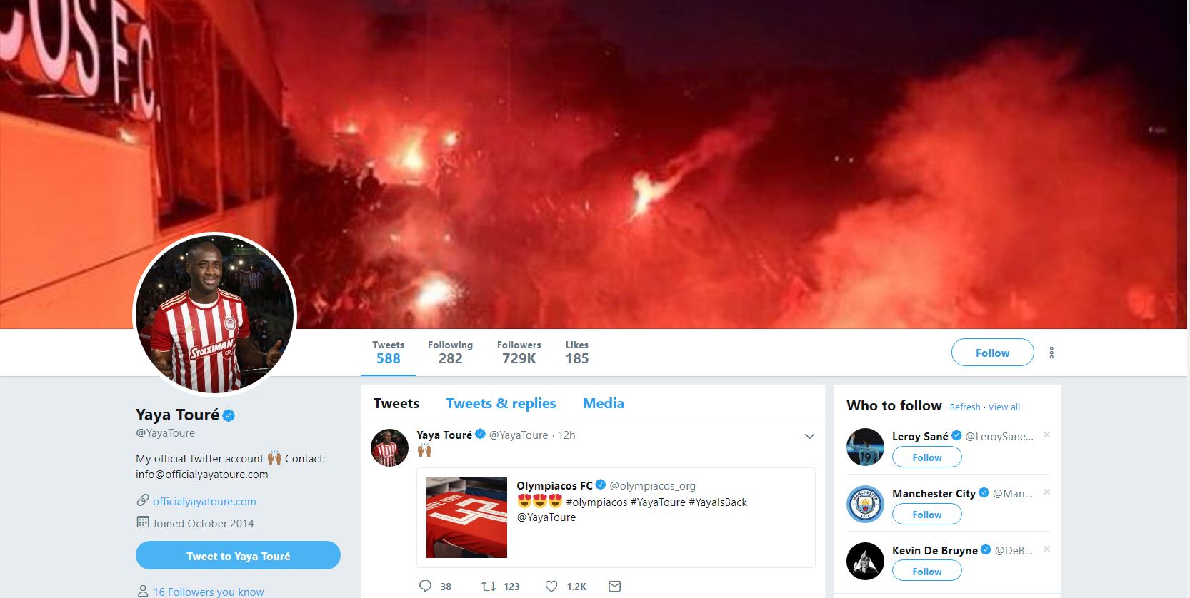 Ο Τουρέ σκέφτεται μόνο την ομάδα και πως θα ευχαριστήσει τον λαό του Ολυμπιακού και είναι χαρακτηριστικό ότι άλλαξε το φόντο στο προφίλ του στο Twitter και έβαλε φωτογραφία από την υποδοχή του στα γραφεία της ΠΑΕ.