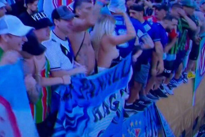 Μάλιστα, κάποιοι ή μάλλον κάποιες ξέφυγαν λίγο παραπάνω κατά τη διάρκεια των πανηγυρισμών και στην κυριολεξία τα… πέταξαν όλα έξω, καθώς η κάμερα εντόπισε δύο γυμνόστηθες γυναίκες – οπαδούς της Αλμπισελέστε να γιορτάζουν με την ψυχή τους μέσα στο γήπεδο και με χιλιάδες μάτια πάνω τους την κούπα της χώρας τους.