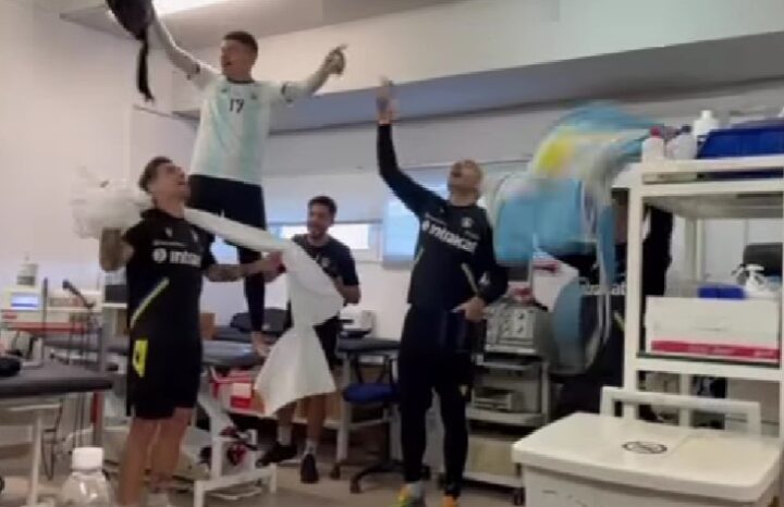 Πάρτι στα αποδυτήρια του Αστέρα Τρίπολης έστησαν οι Αργεντινοί ποδοσφαιριστές της ομάδας μετά την κατάκτηση του Παγκοσμίου κυπέλλου.