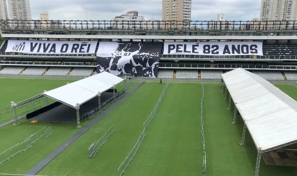 Στο ιστορικό γήπεδο όπου ο Βραζιλιάνος μύθος πέτυχε απίστευτα πράγματα, έχουν τοποθετηθεί δύο μεγάλα πανό προς τιμήν του, ενώ στο χορτάρι έχουν στηθεί και δύο σκηνές στις οποίες θα εισέρχεται ο κόσμος και θα περιμένει προκειμένου να οδηγείται μέσα από αυτές στο κέντρο του γηπέδου.